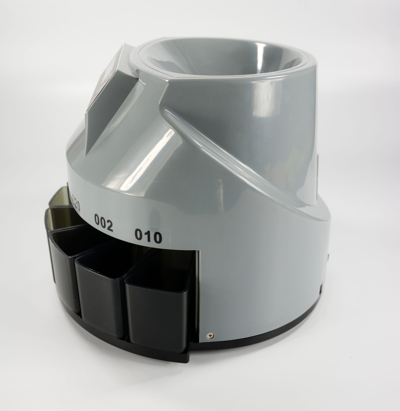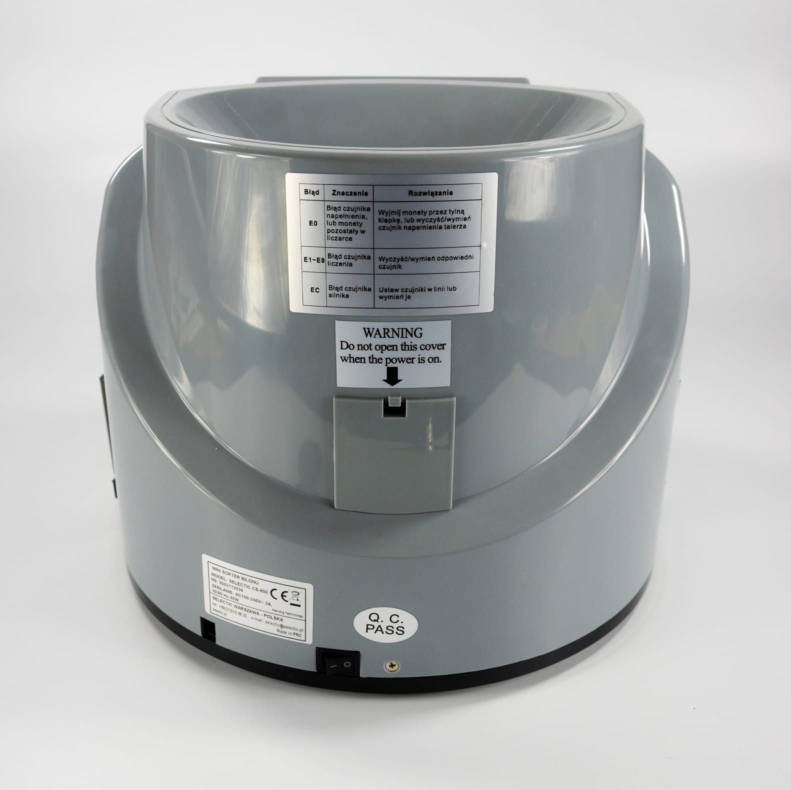 Kompaktowe wymiary oraz niewielka waga sprawiają, że sorter można zainstalować praktycznie w każdym miejscu pracy, nawet tam, gdzie przestrzeń jest ograniczona. Stonowana kolorystyka, obejmująca szarą obudowę oraz czarne kieszenie z półprzeźroczystego tworzywa, nadaje urządzeniu profesjonalny wygląd pasujący do zaplecza sklepowego, biurowego lub bankowego. Niski pobór energii oraz solidna konstrukcja zapewniają długą i bezproblemową eksploatację, czyniąc sorter bilonu praktycznym rozwiązaniem dla sklepów, hurtowni, banków, myjni samochodowych, piekarni i innych miejsc, w których liczenie monet jest codziennością.