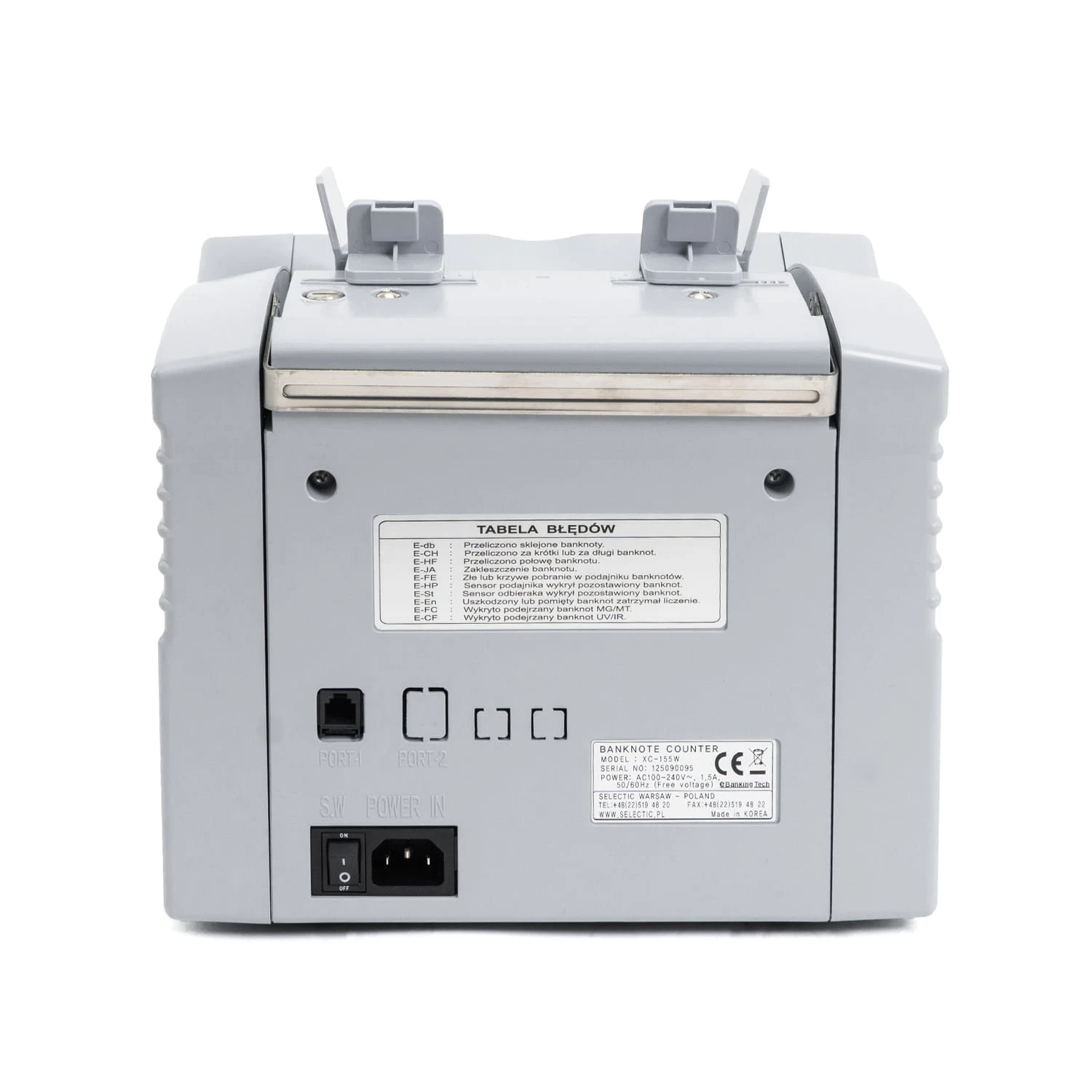 XC-155W to standardowa liczarka banknotów klasy profesjonalnej, wyprodukowana w Korei i zaprojektowana z myślą o intensywnej, wieloletniej eksploatacji. Solidna konstrukcja oraz rygorystyczna kontrola jakości na etapie produkcji gwarantują niezawodność i stabilną pracę nawet przy częstym użytkowaniu. Urządzenie doskonale sprawdzi się w firmach, instytucjach oraz punktach handlowych, w których liczy się szybkość, dokładność i podstawowa weryfikacja autentyczności banknotów.